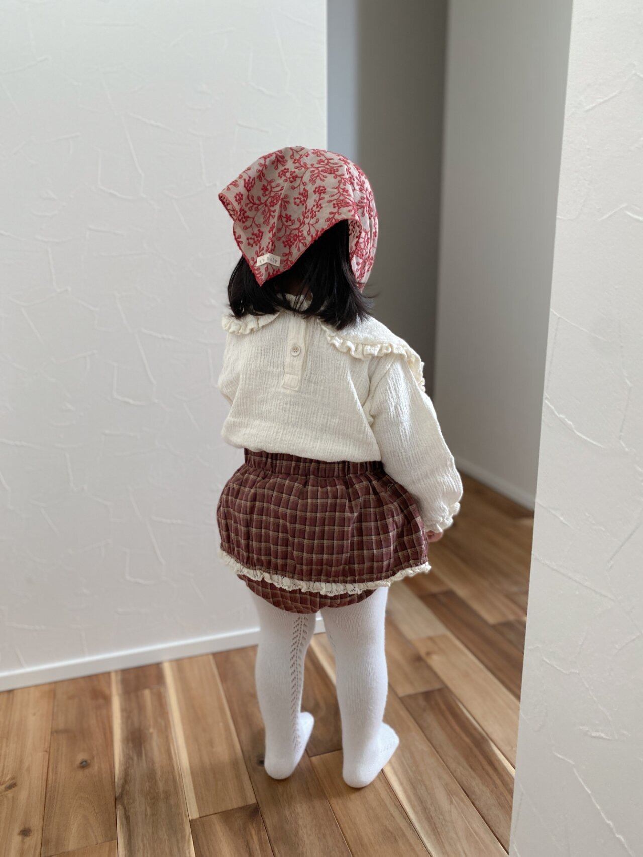 小さなfrillのcheck柄が秋のお出かけコーデに
